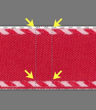 Вместо того, чтобы работать по всей ее длине, я сделаю крошечное выделение повторяющегося сегмента.В этом случае я вижу, что края имеют чередующиеся цвета и расстояние между ними одинаковое.Давайте сделаем прямоугольное выделение, которое будет идти от начала повторяющегося дизайна до его конца.