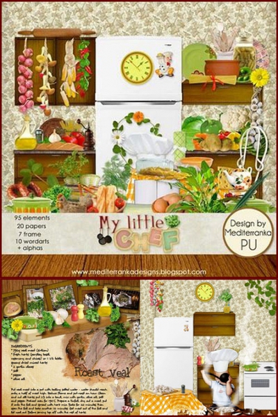 Представляю Вашему вниманию очаровательный кулинарный скрап-набор «Поваренок», в котором Вы найдете качественный алфавит («в клеточку»), интересные кулинарные вордарты и красивейшие реалистичные элементы: корзинка, полная куриных яиц, ярко красный редис с ботвой, баклажаны и кабачки, лук и капуста, специи и связки …